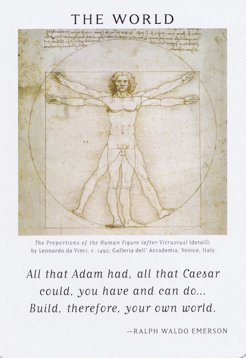 ・・・・・・・・・・・・・・・・・・・・・・・・・・・・・・・・・ ダヴィンチの『ウィトルウィウス的人体図』が 『World』のカードに使われるという発想が面白い。