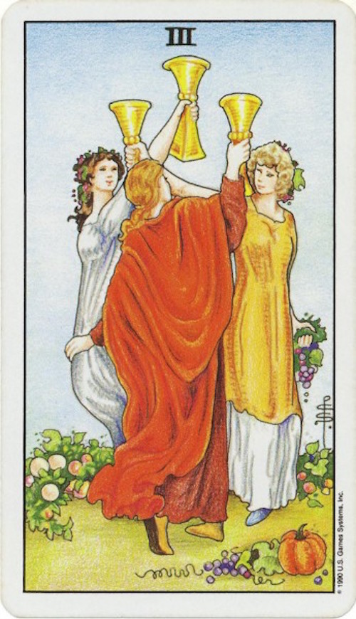 【カードの意味】 正位置 お祝い 友情 創造 コミュニティ 逆位置 情事 三角関係 秘密 カップの3は祝祭と達成のカードです。 3人の女性は喜びの乾杯をしています。 日常の煩わしさを忘れて、楽しんでください。 燃え尽きる前に息抜きしてください。 ストレスを発散させるためには友達の助けが要ります。 妥協は調和を生み出します。 心の中でプラスの変化をもたらし、 プロセスを楽しくします。 コミュニティを良くするために一緒にいる人を表します。 ポジティブなエネルギーと情熱を共有することで、 目標を達成することができます。 これはみんなで一緒に成功を祝うサインです。 ライダータロット