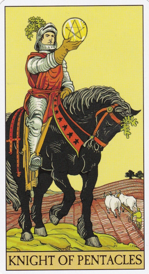 【カードの意味】 乙女座を司るコインナイトは慎重かつ丁寧です。 目的に向かってコツコツと行動することを表します。