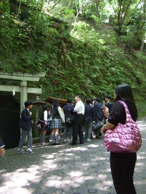 ここの霊水が鎌倉五名水の「銭洗水」で、この水でお金を洗うと何倍にも増えるそうです。
