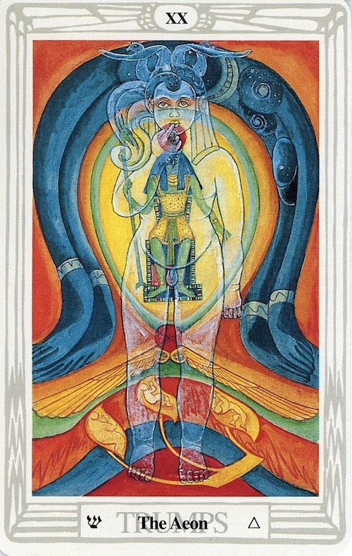 濃いブルーの女性は無限の可能性を示す女神ヌイトで、