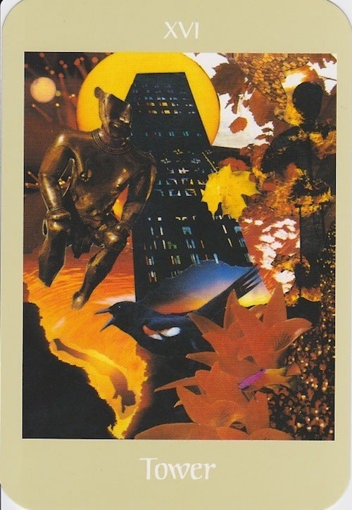 太陽は気づきの火を表し、タワーよりも上にあります。