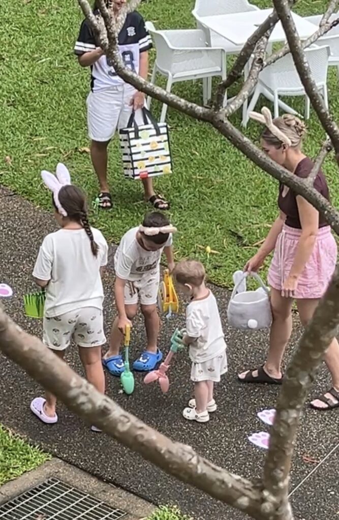さきほど、お母さんたちが庭に