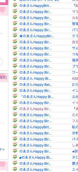 ハッピーコーディネーター@みさき のゑです。 10/2誕生日を迎えました。 浜崎 あゆみさん、山瀬 まみさん ヤナ ノボトナ(テニス選手)ダナ キャラン マハトマ=ガンディー と同じ誕生日。 ぜひドリカムのHAPPY BIRTHDAYを聞きながらどうぞ。 午前0時を過ぎたら イチバンに届けよう Happy birthday,Happy birthday Happy birthday to you 今日はあなたを取り囲む すべての人達にも Very special,Very special It’s a very very special day 出会えて良かった 素直に言える一年に一度の日 You’re my precious Have a super great extra good time! たくさんの素晴らしい出来事が まだまだ あなたに訪れるように 祈りながら Happy birthday to you!! 2011-10-02 00:00:00 この歌詞通りの予約投稿されたみなさんからのメッセージがブログジャックしました。