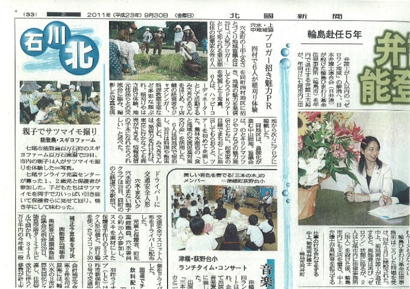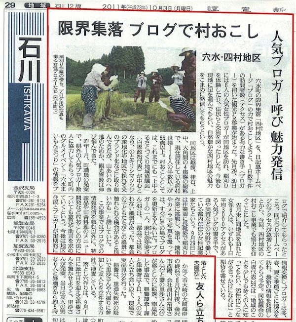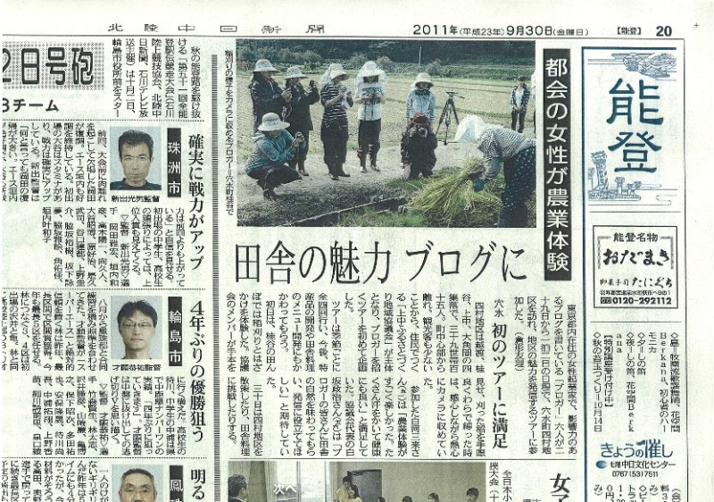 中日新聞 田舎の魅力 ブログに 都会の女性が農業体験 【新聞掲載】 読売新聞