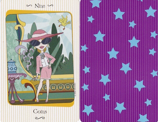 【コイン9の意味】 感謝 贅沢 自立 最高潮 頂点 ぶどう園に女性がいます。 ぶどうの木はぶどうとゴールドのコインで 重くなっていて、望みが叶ったことを表します。 鷹は彼女が知的で精神的であることを象徴します。 平和、満足の他に創造的なベンチャー、個人投資の達成という意味があります。 それは自身の努力の結果として永続的な成果をもたらします。 こちらがオーソドックスなライダータロット。